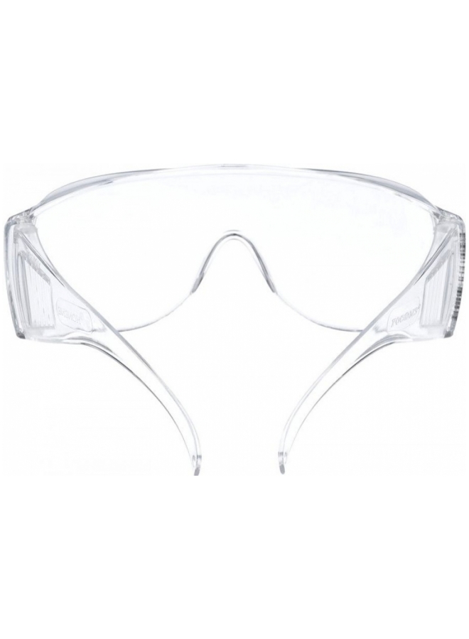 Панорамные линзы с покрытием от запотевания изнутри и от царапин снаружи. Три уровня защиты: фронтальный, верхний, боковой. Дужки без регулировки, заушники широкие.