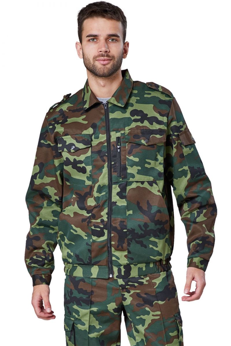 Рукава с манжетами, застегивающимися на пуговицы. На левом рукаве накладной карман с фигурным клапаном, застегивающимся на кнопку. На накладном кармане обработан прорезной карман, застегивающийся на тесьму «молния». Притачной пояс стянут по бокам эластичной тесьмой. В области плечевых швов погоны, застегивающиеся на кнопки.